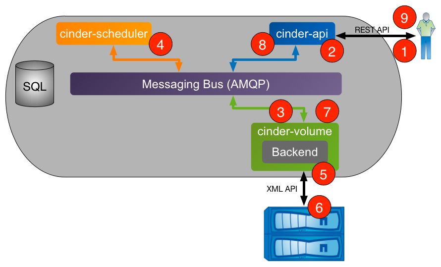 The following section walks through the steps that occur when a user requests the creation of a new volume from Cinder.
