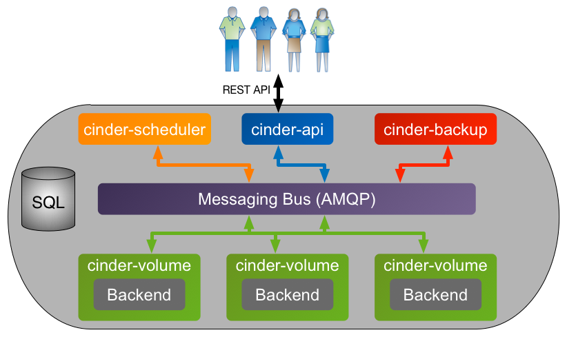 There are four processes that make up the Cinder service: